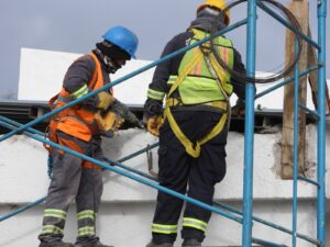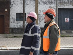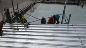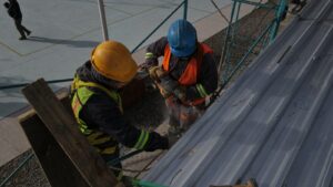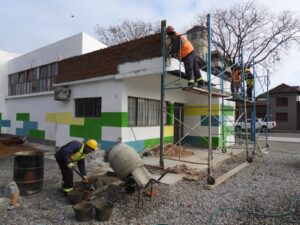 Compañeros municipales, trabajan actualmente en la refacción y mejora de los techos de vestuarios a la vez que se realizan tareas de mantenimiento general.