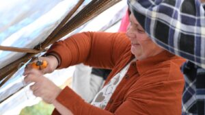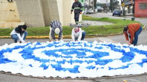 Trabajo realizado por las artesanas locales Paola Mesique y Beatriz Rocha, las que utilizaron más de 750 metros de tela para su confección.