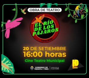 Este sábado 20 de setiembre, se presentará a las 16:00 horas la obra de teatro infantil: “El Río de los Pájaros” y posteriormente a las 18 horas se presentará la obra “Cercanos”, en ambos casos con entrada libre.