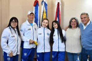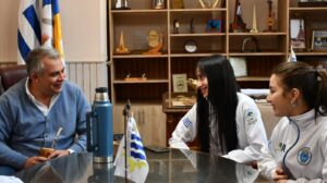 Los deportistas Federica de Souza y Sofía Perinetti, ambos con el grado de cinto negro 2 Dan y los coach Brandon Perinetti y Carlín Perinetti de la Escuela O-KWANG que integran la delegación de deportistas uruguayos que representarán al país fueron recibidos por el Jerarca quien brindó el apoyo del Gobierno de Treinta y Tres. Participarán junto a 1473 atletas de 57 países en el evento internacional que comienza este 11 de octubre.-