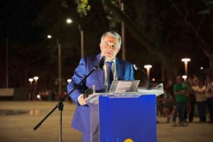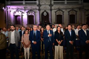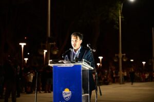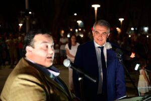 El intendente departamental Dr. Mario Silvera encabezó los actos que fueron acompañados por una multitud que desbordó la plaza.