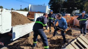 Construcción de veredas en barrio 19 de abril a cargo de personal del Gobierno de Treinta y Tres.