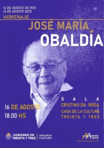 El Gobierno de Treinta y Tres, conmemora el centenario del nacimiento del Maestro José María Obaldía.